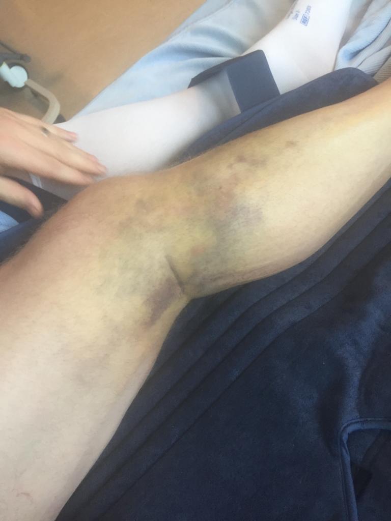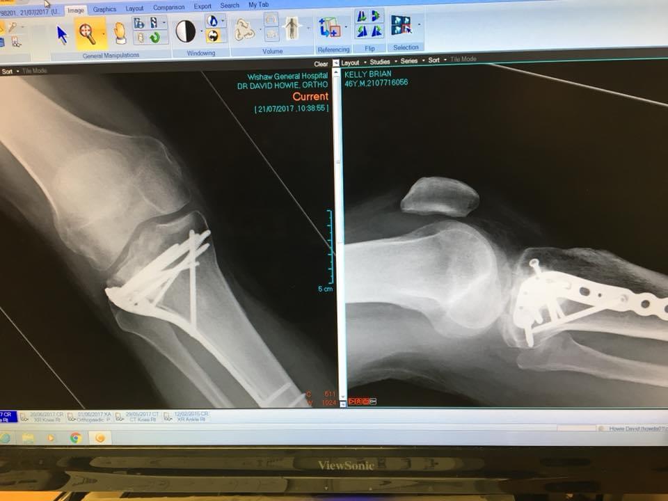 And after 5 days in hospital a little bit of metal to help put him together again….all because Courtie wanted a piggyback.
