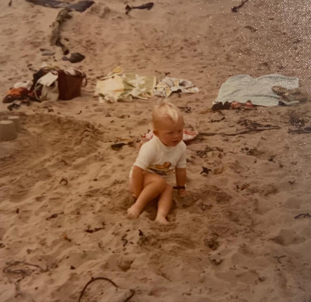 Family holidays often saw the Kelly’s heading South to the Vauxhall Holiday Park in Great Yarmouth. Mummy K was super organised and would fill up a hamper and send it down, 3 weeks in advance, the only downside, was it had to be humfed from the train station to the caravan. Thankfully, everybody had had their cold roll and bacon, the staple snack for the start of the holiday. Fun times were had by all, especially this wee cutie in the sand.